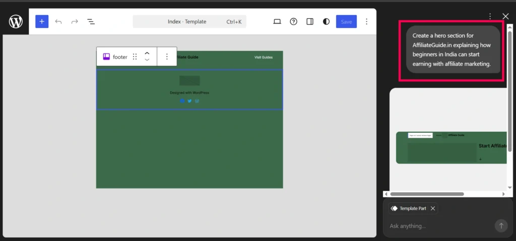 Before you start editing different parts of the site, keep a few prompting tips in mind that will help the AI work better for you:
