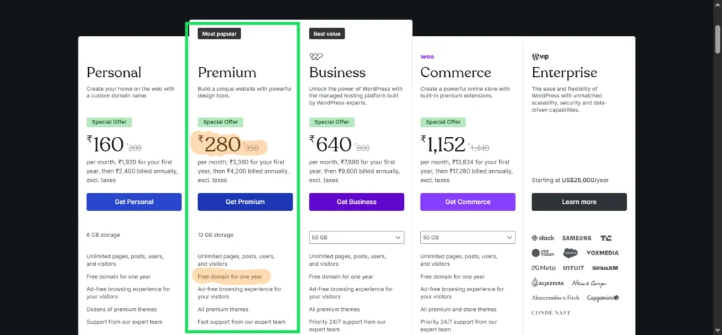In my case, I chose the Premium annual plan to take the site live.